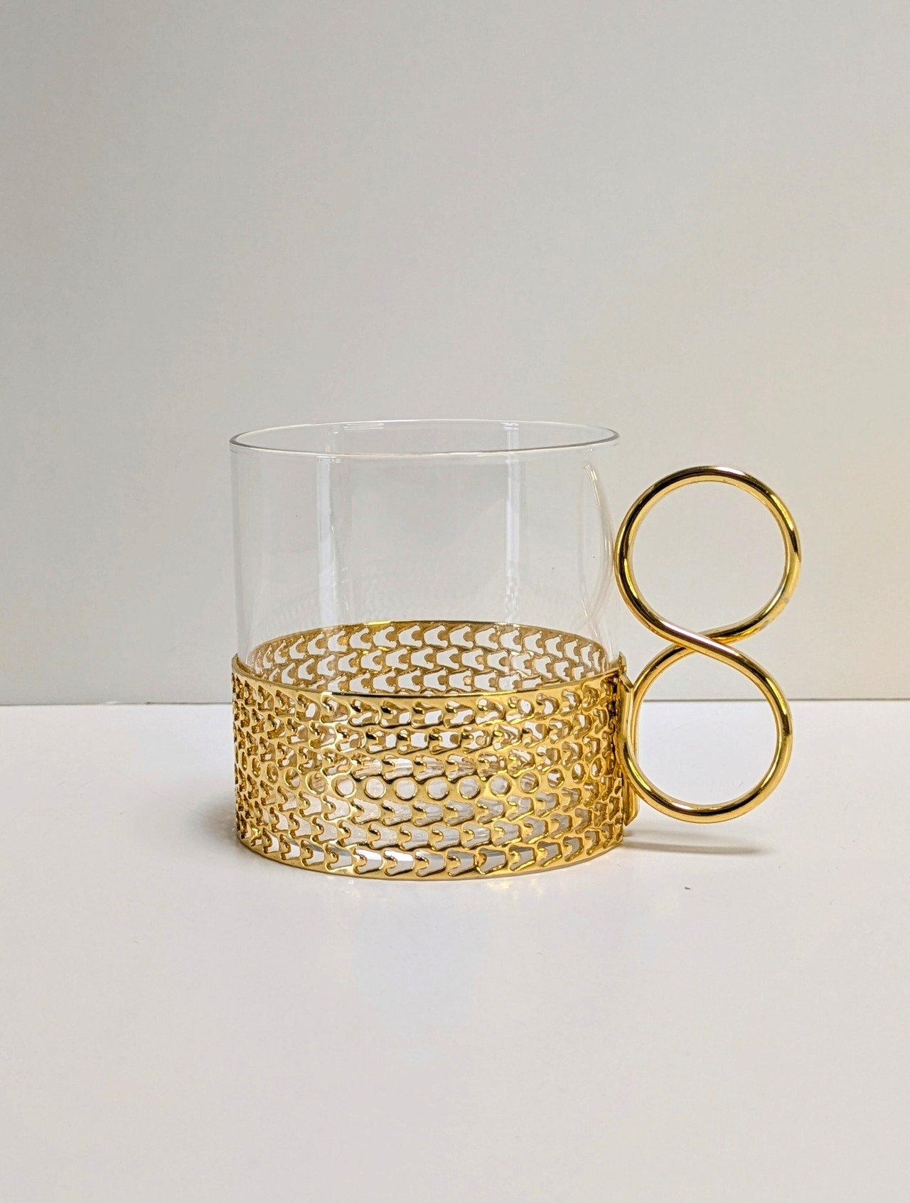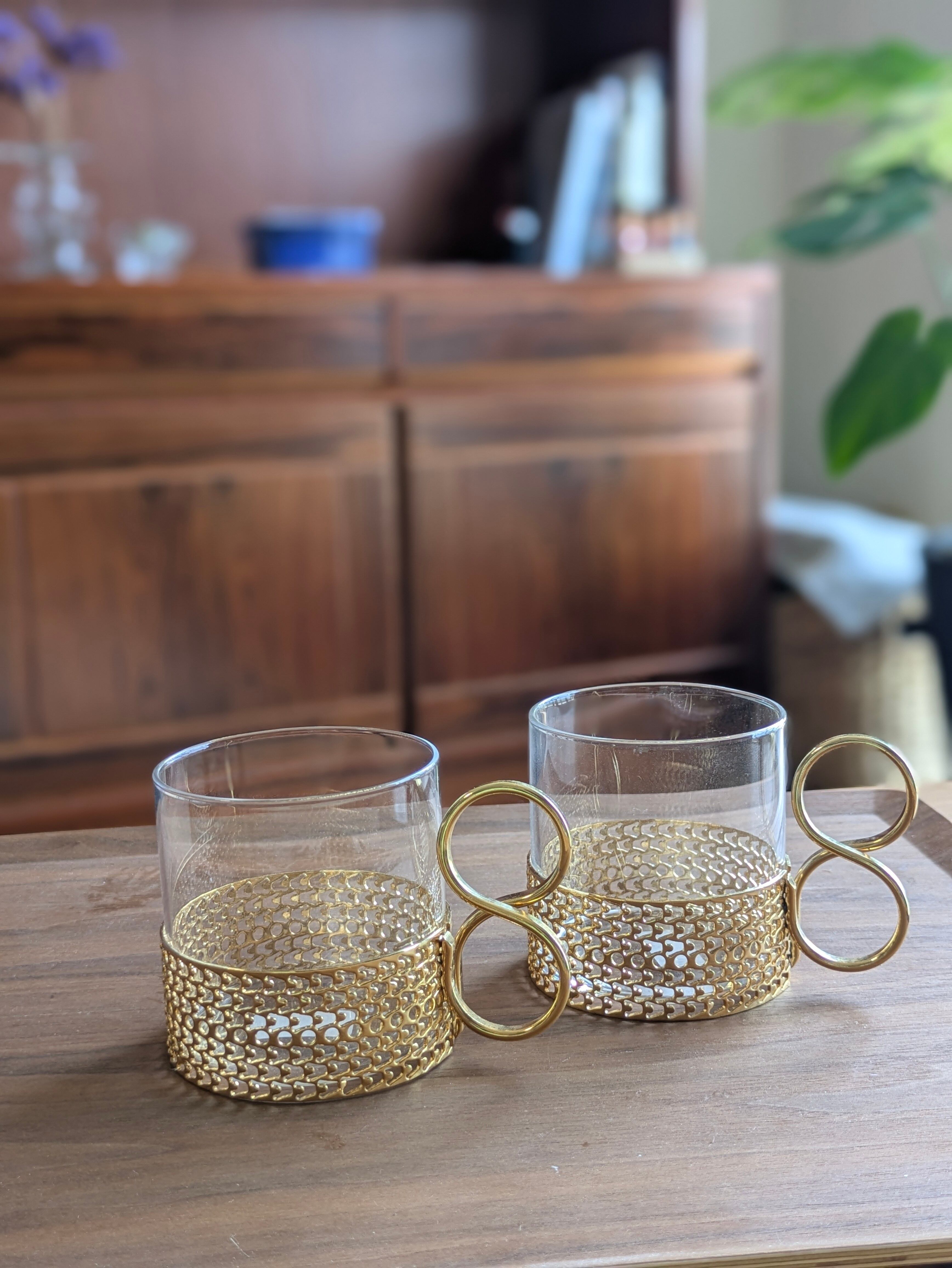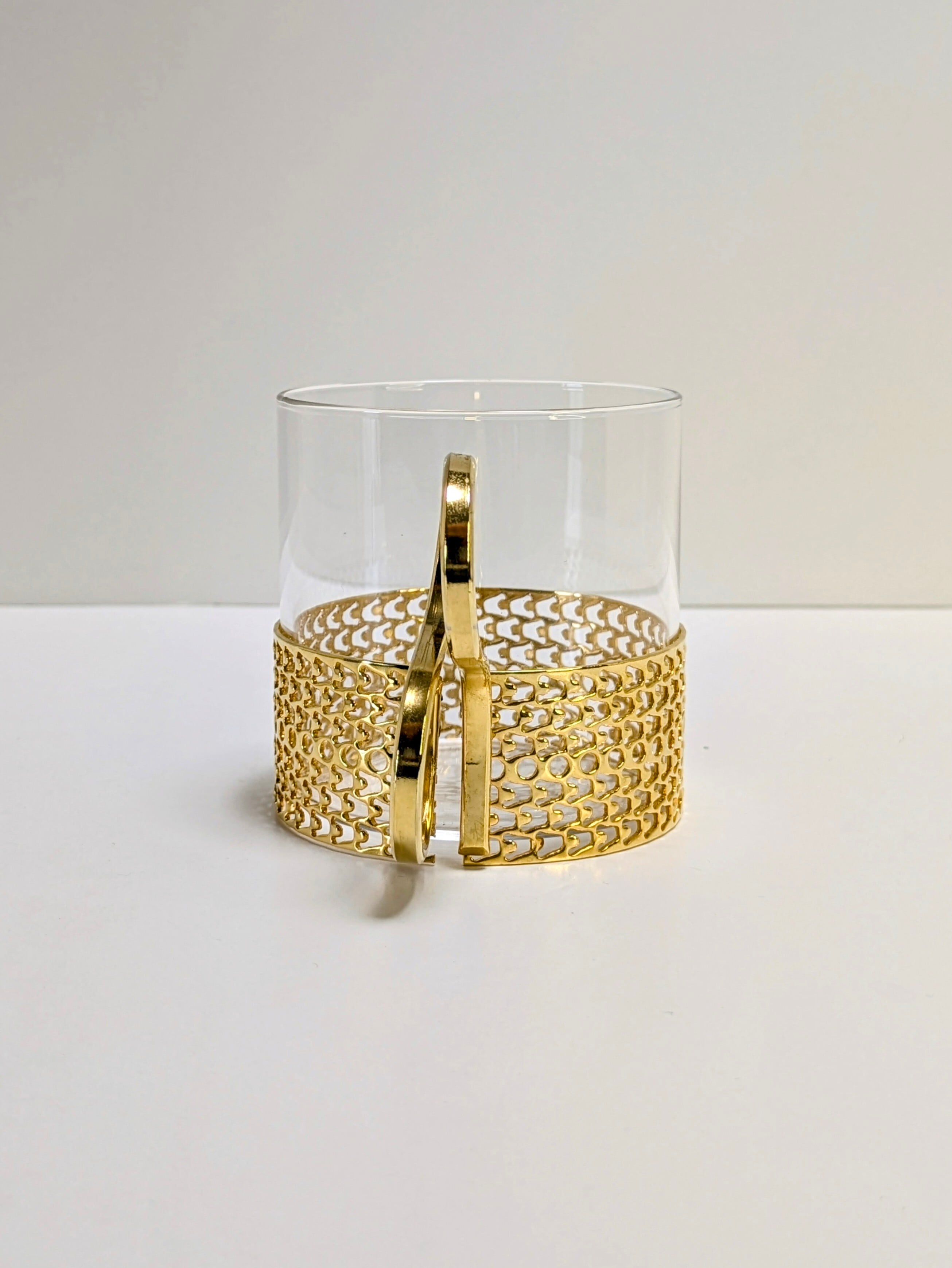 こちらはカラーッティ/Karaattiとサブネームのある、金メッキのゴールドタイプでグラスにくびれのない円柱タイプです。ホルダーを外して洗うことができます。