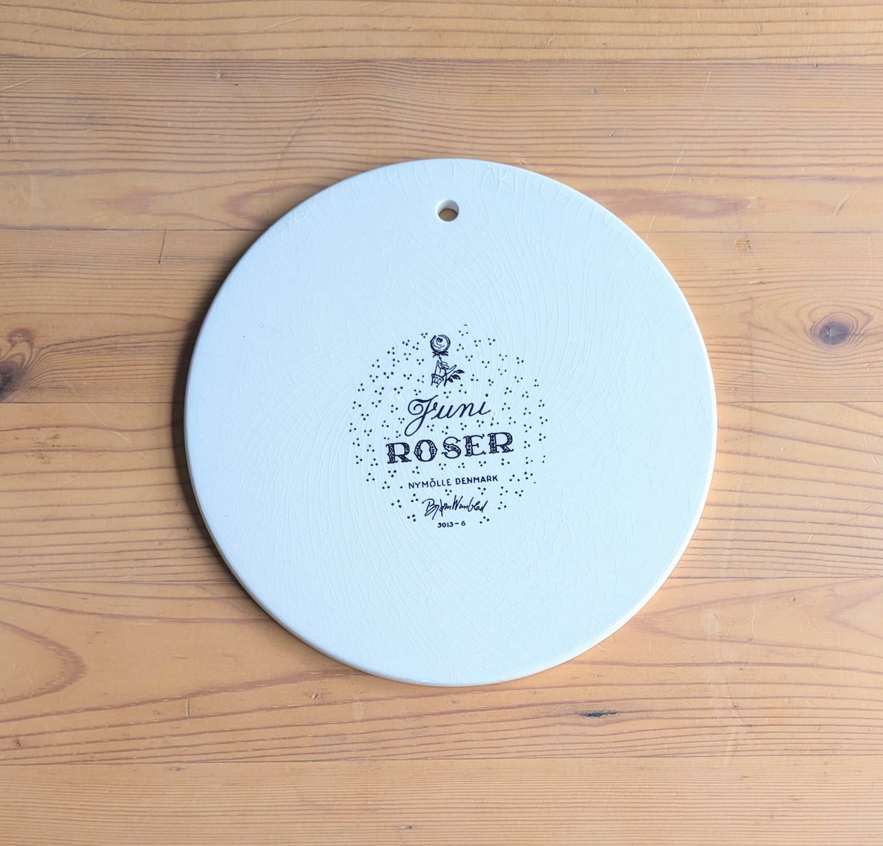壁に掛けられるようにプレートに一箇所穴が開けられています。インテリアのアクセントとしても素敵です。