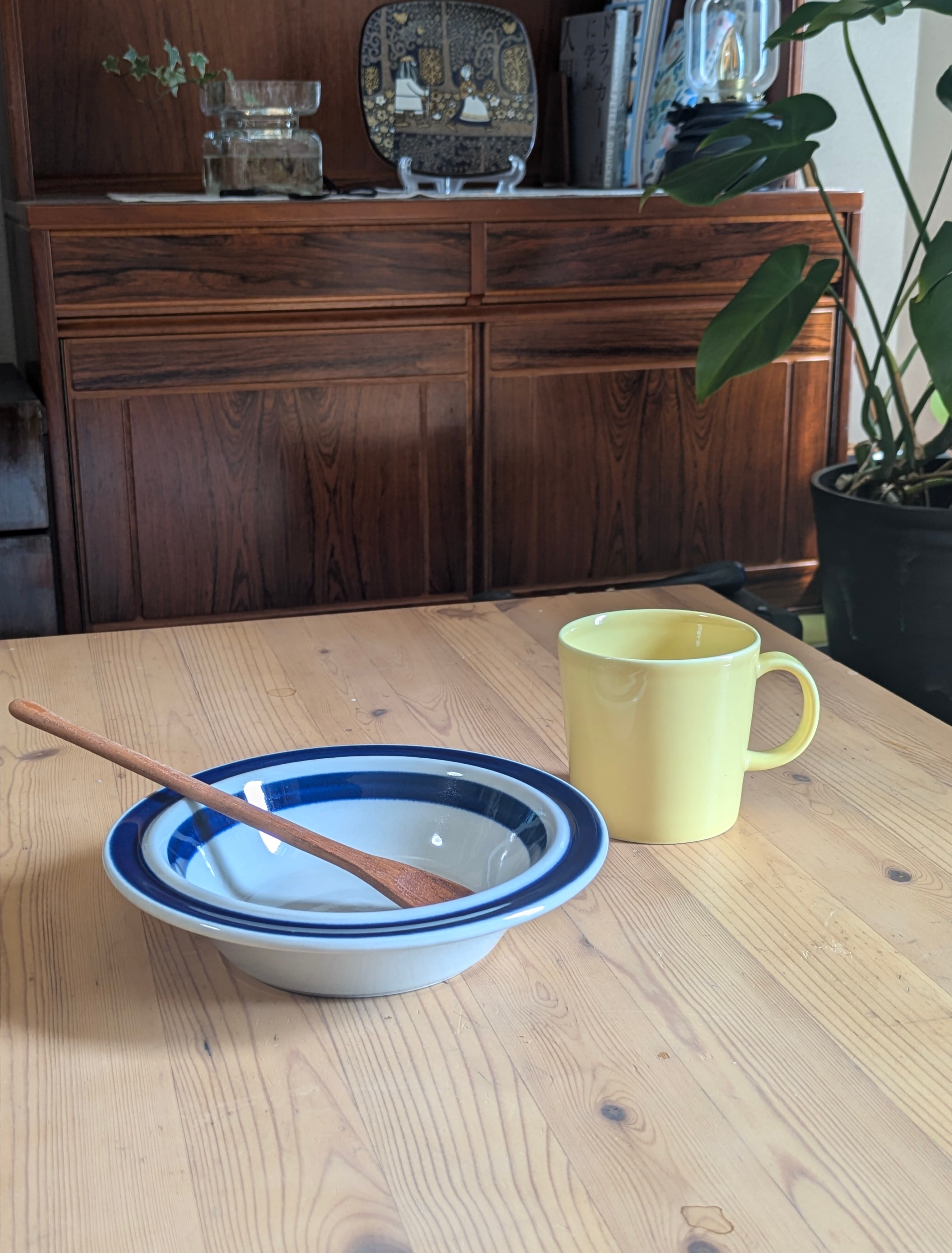 マグカップは現在も生産されていますが、イエローは廃番色となります。Teema yellowと呼ばれ現行品のハニーに比べて淡い色合いで、人気のカラーとなっています。