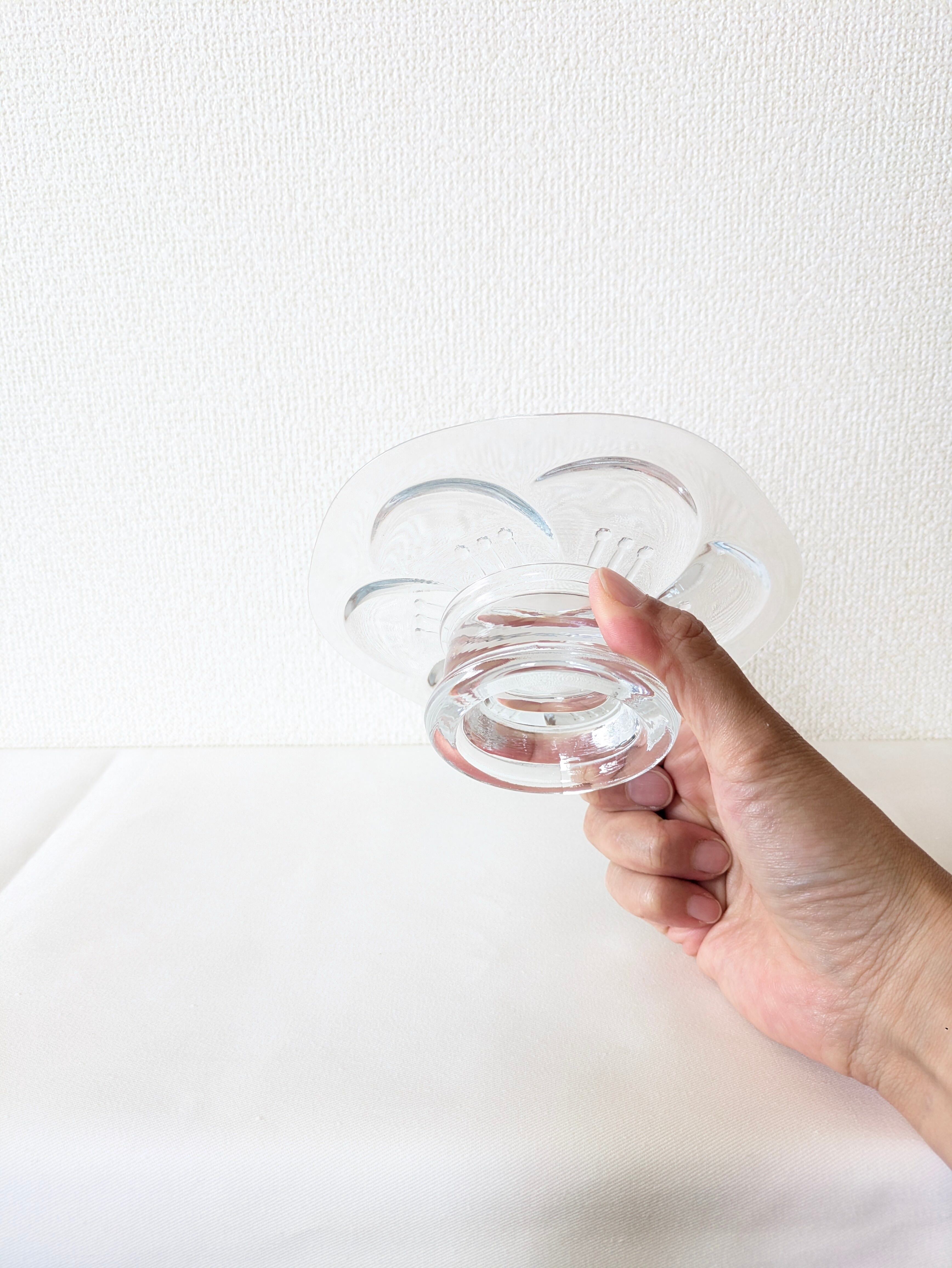 nuutajarvi/ヌータヤルヴィのLumme/ルンメシリーズのキャンドルホルダー(大)です。Lumme はフィンランド語で蓮の花の意味で、立体で表現された花びらが水面に浮かんでいるようなかわいらしいデザインです。