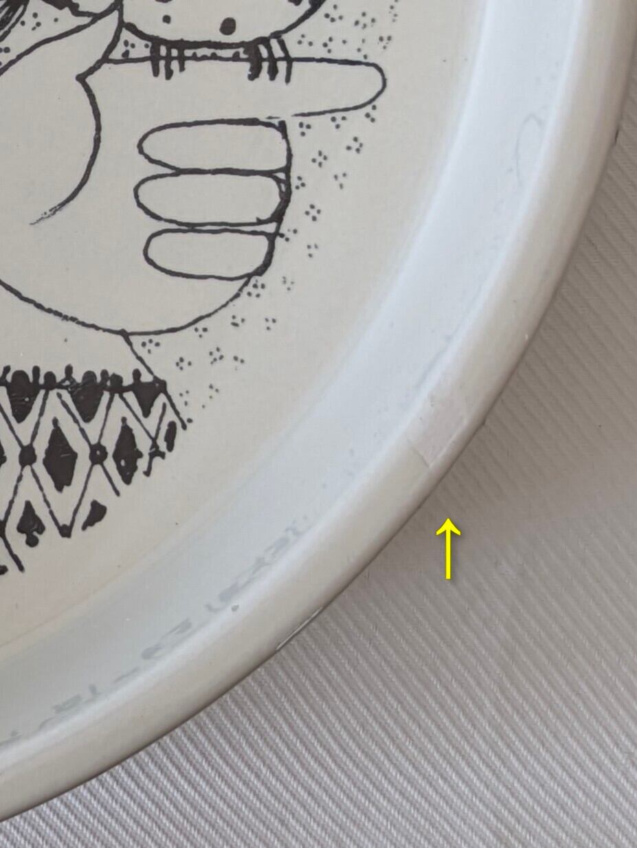 この商品は、北欧の一般家庭などで実際に使われていた物です。カトラリーの跡やくすみ、細かいキズが見られる場合がございます。目立つ傷や損傷については、説明文の中に記載しておりますが、全ての小さな傷を画面上でお伝えしきれないところもあります。ヴィンテージとして商品をお楽しみ頂けたらと思います。気になる点がございましたらメールにてお問い合わせください。ご注文前にご理解の上、ご購入をお願いいたします。
