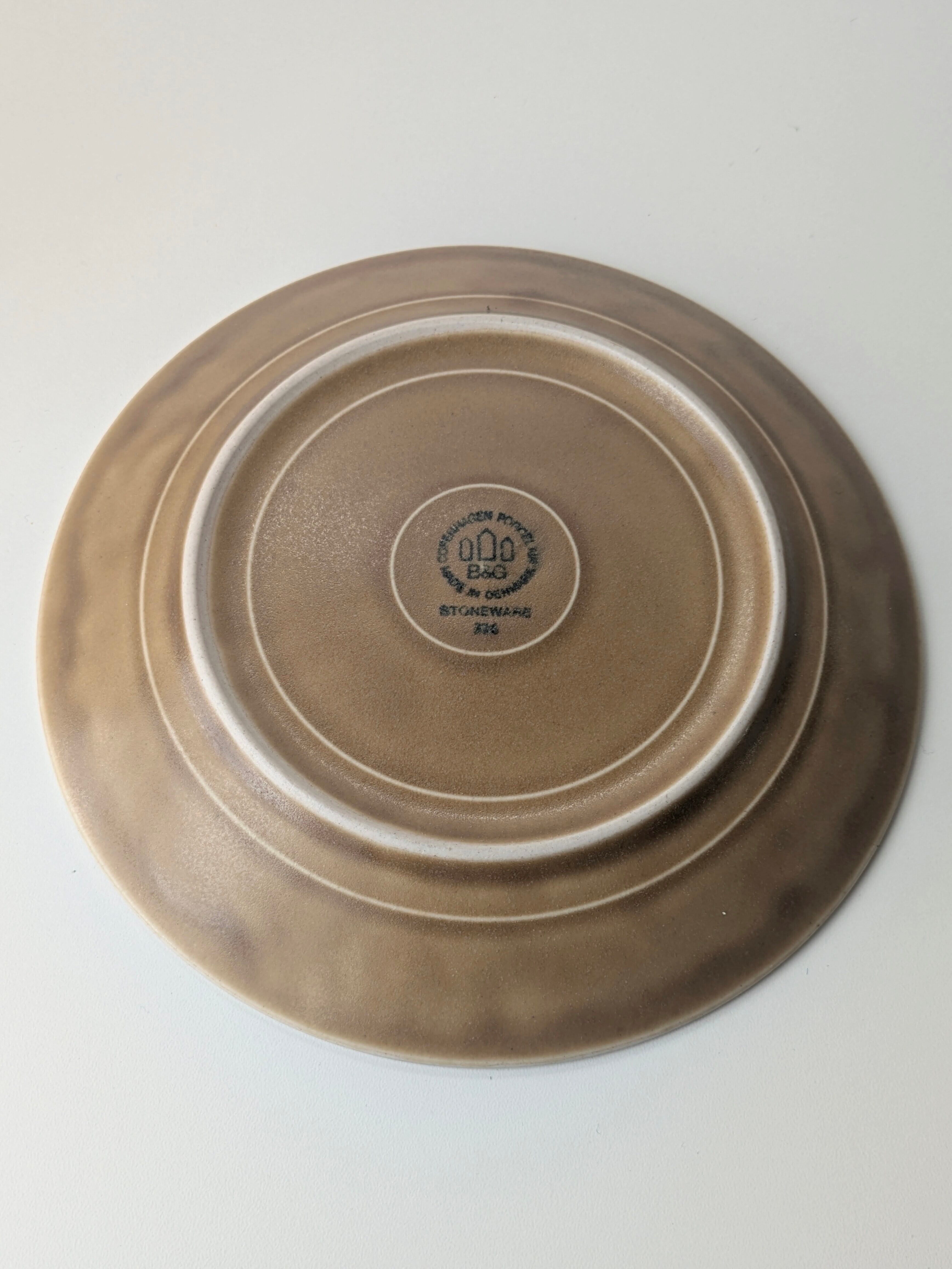 同じシリーズでも、窯元や年代が異なるため、バックスタンプが異なるのも特徴です。刻印が、B&G、Kronjyden、Nissen、バックスタンプなしの4タイプあり、バックスタンプのないものは、クロニーデン/Kronjyden窯のものになります。こちらは、B&Gです。